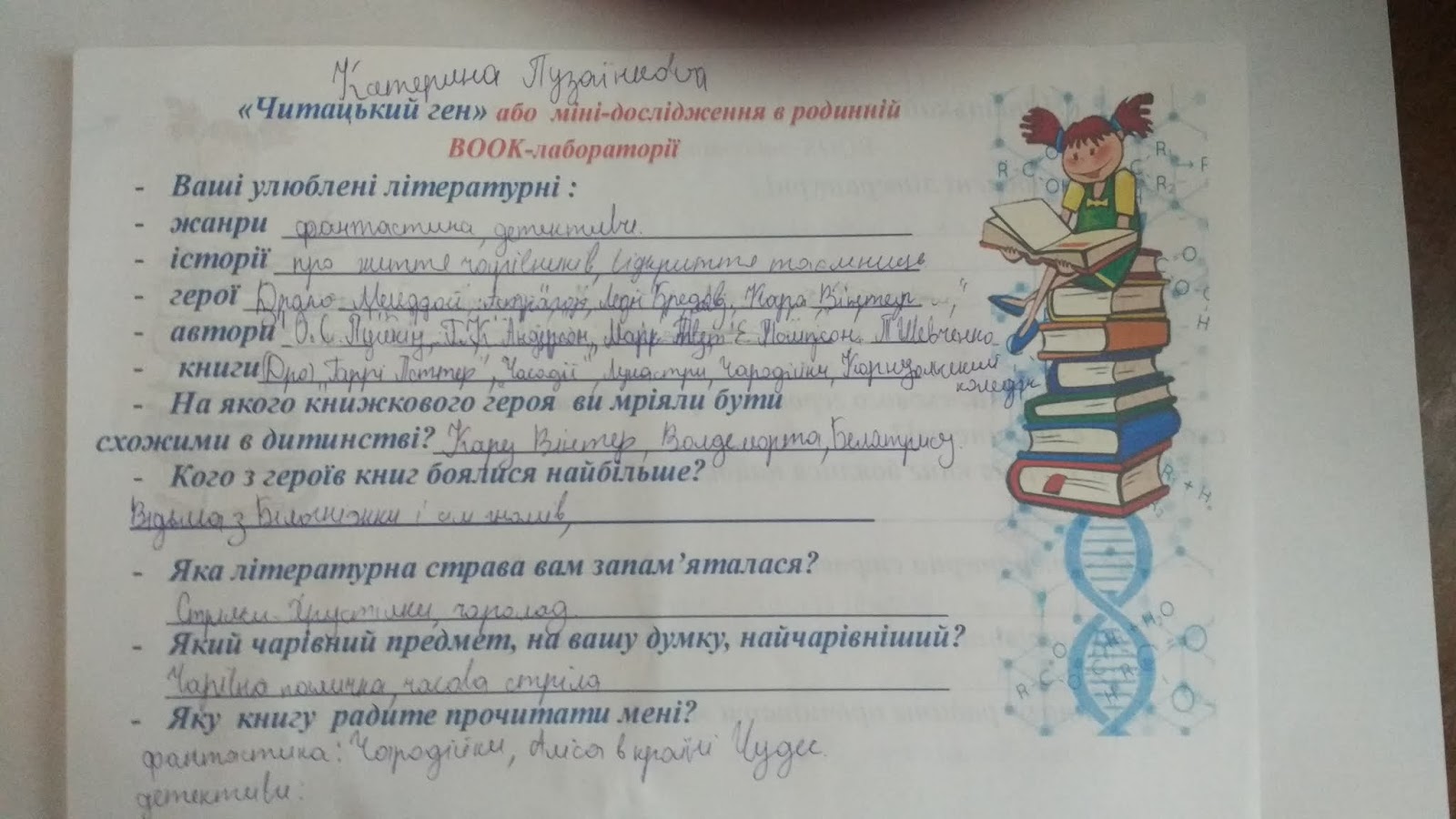В рамках тижня дитячого читання у Перегонівській сільській бібліотеці відбулося анкетування " Мінідослідження в book лаболаторії "Читацькийген""