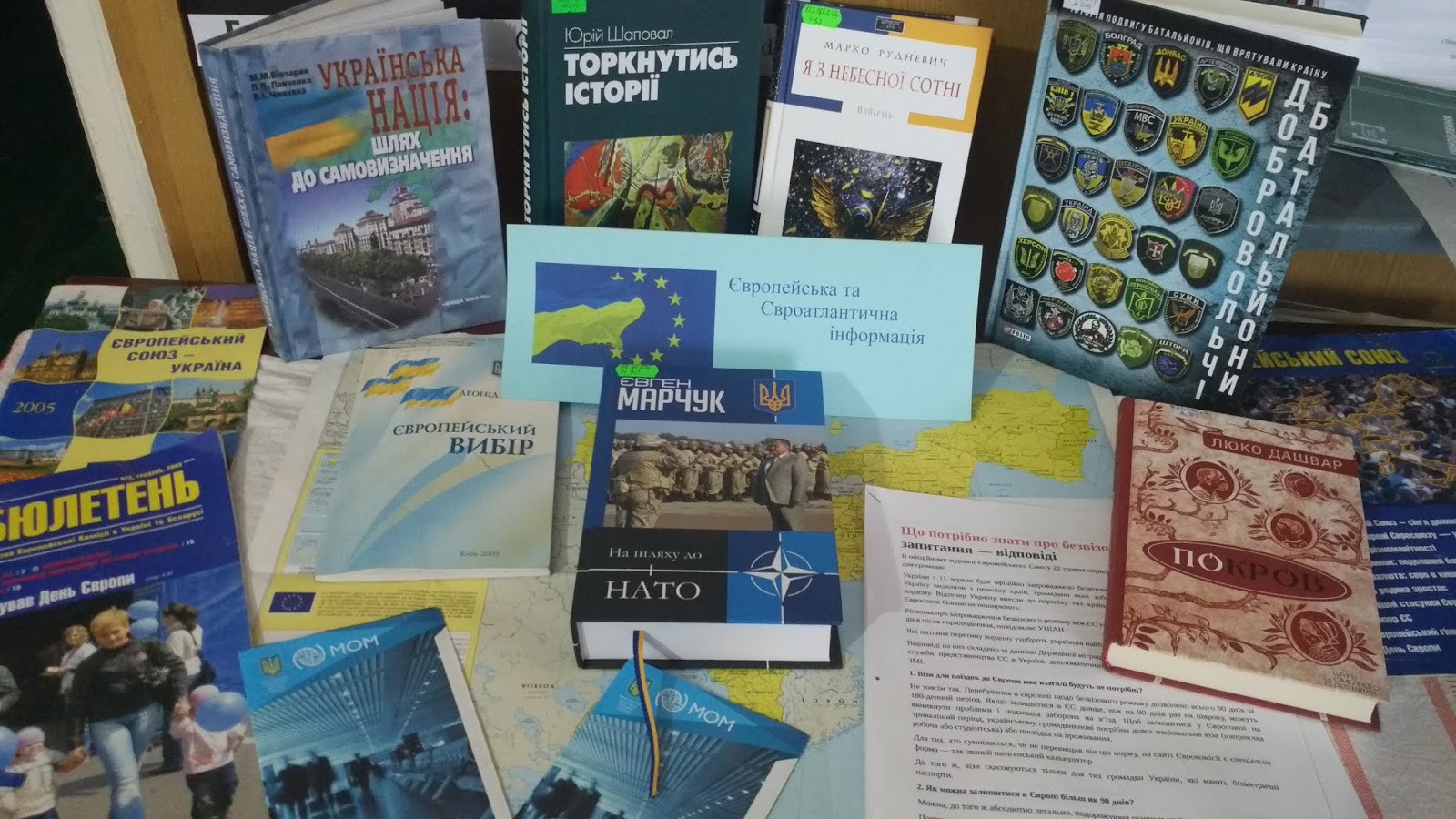 відзначення цієї дати в бібліотеці поновлено куточок Євроентеграції новими документами про події, що змінили долю України та висвітлюють тематику Дня Гідності
